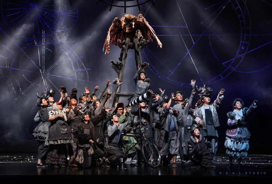 该剧的舞台呈现也极具匠心。导演充分调动各种舞台手段,将写实与写意完美结合。旋转舞台象征着时代的流转变化,灯光设计营造出梦幻现实的交织效果,音乐运用恰到好处地烘托了剧情氛围。特别是“猫头鹰”这一象征性角色的设置,既增加了剧作的寓言色彩,又赋予作品一种超越现实的审视目光。而剧中反复出现的“猜拳行令”场景,既是普通百姓苦中作乐的生活智慧,也暗含着底层人民坚定的乐观主义精神。这些艺术手法的综合运用,使整个演出在保持现实主义厚重感的同时,又洋溢着诗意的浪漫情怀。